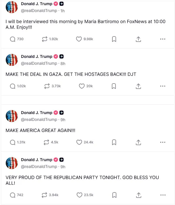 Останні дописи Дональда Трампа у Truth Social / Скриншот 24 Каналу