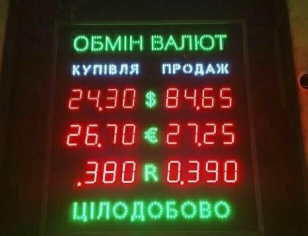 На табло одного из местных обменников жители заметили очень странный курс доллара. Украинцам предлагали купить американскую валюту по 84,65 гривен за 1$.